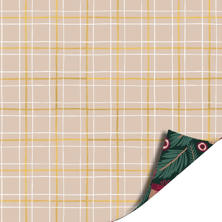 OverzichtDit leuke kerst inpakpapier is dubbelzijdig te gebruiken.
